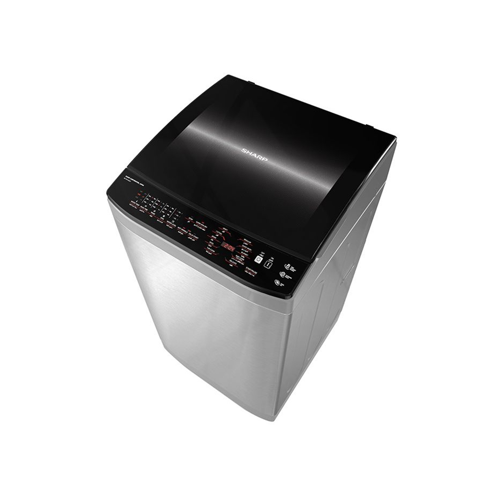 غسالة ملابس فوق اوتوماتيك شارب، 11 كجم، باب زجاج هيدروليك، ديجيتال، تحميل علوي، ES-TN11GDSP - فضي | أسواق المرشدي