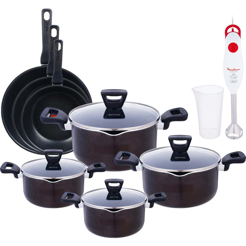 العلامة التجارية: تيرينوفا النوع: طقم حلل الخامة: تيفال اللون: نبيتي عدد القطع: 7 قطع يتكون من: حلة مقاس 18 سم حلة مقاس 20 سم حلة مقاس 24 سم قلاية مقاس 24 سم سطح غير لاصق عالي الجودة: يمنع التصاق الطعام، مما يسهل الطهي والتنظيف دون الحاجة لاستخدام الكثير من الزيت أو الزبدة. توزيع حرارة متساوي: يضمن تسخين الطعام بشكل متساوٍ للحصول على نتائج طهي مثالية. سهولة التنظيف: يمكن تنظيف الطقم بسهولة يدويًا أو في غسالة الصحون.