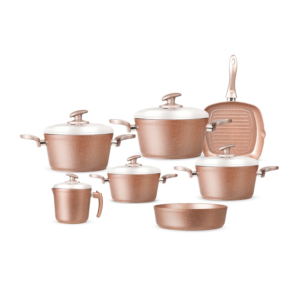 طقم حلل جرانيت، 12 قطعة - روز جولد | أسواق المرشدي
