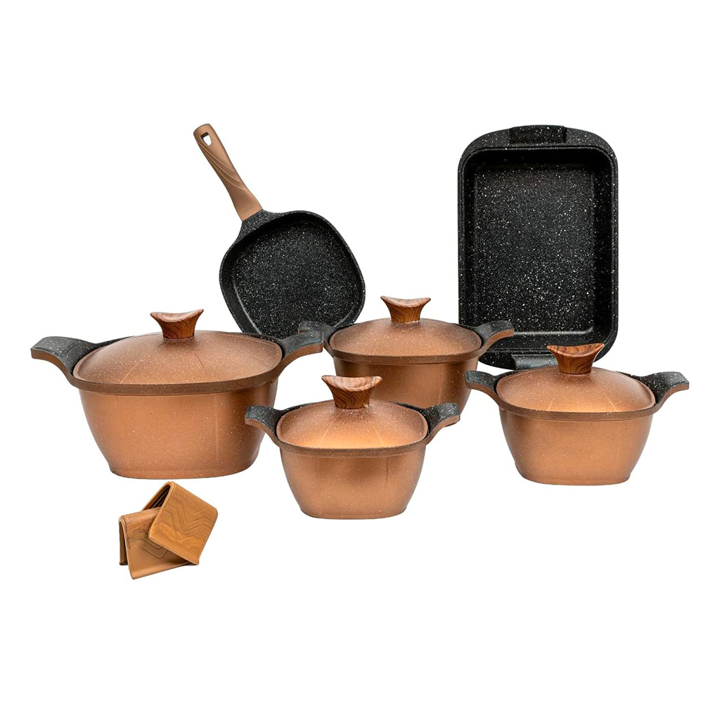 طقم حلل تيتانيوم بغطاء زجاج، 9 قطع - روز | أسواق المرشدي