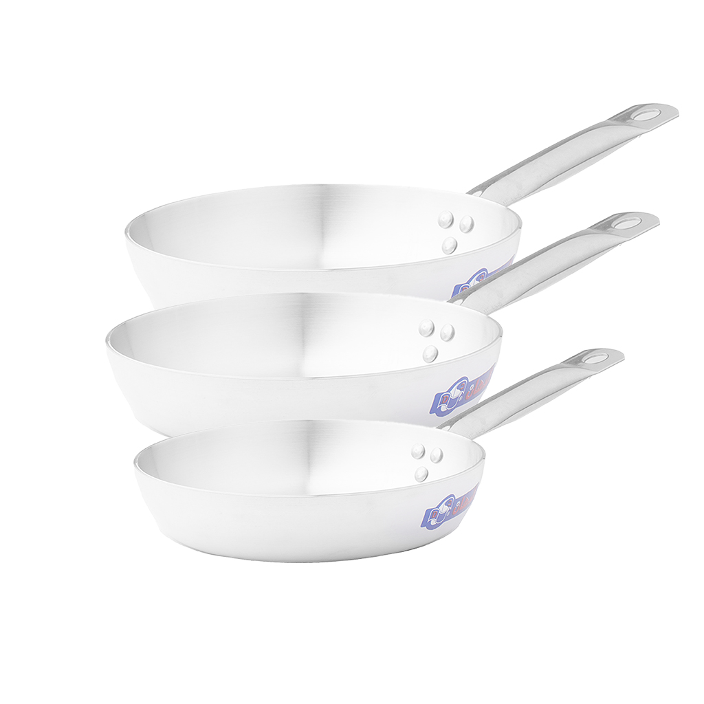 العلامة التجارية: الدهان النوع: طقم قلايات اللون: فضي الخامة: المونيوم يتكون من: قلاية مقاس 20 سم قلاية مقاس 22 سم قلاية مقاس 24 سم