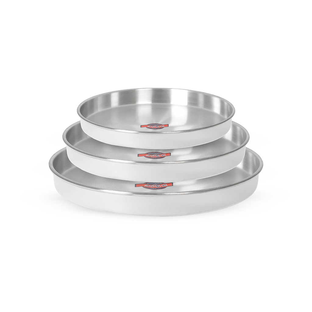 العلامة التجارية: الأهرام النوع: طقم صواني فرن دائرية الخامة: ألومنيوم اللون: فضي عدد القطع: 3 قطع يتكون من: صينية فرن مقاس 22 سم صينية فرن مقاس 28 سم صينية فرن مقاس 32 سم