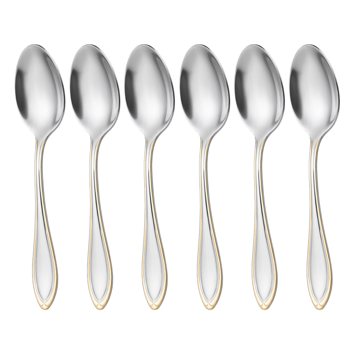 طقم ملاعق شاي ستانلس ستيل، 6 قطع - فضي ذهبي