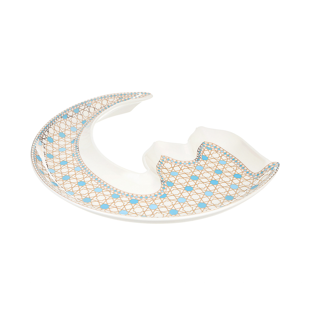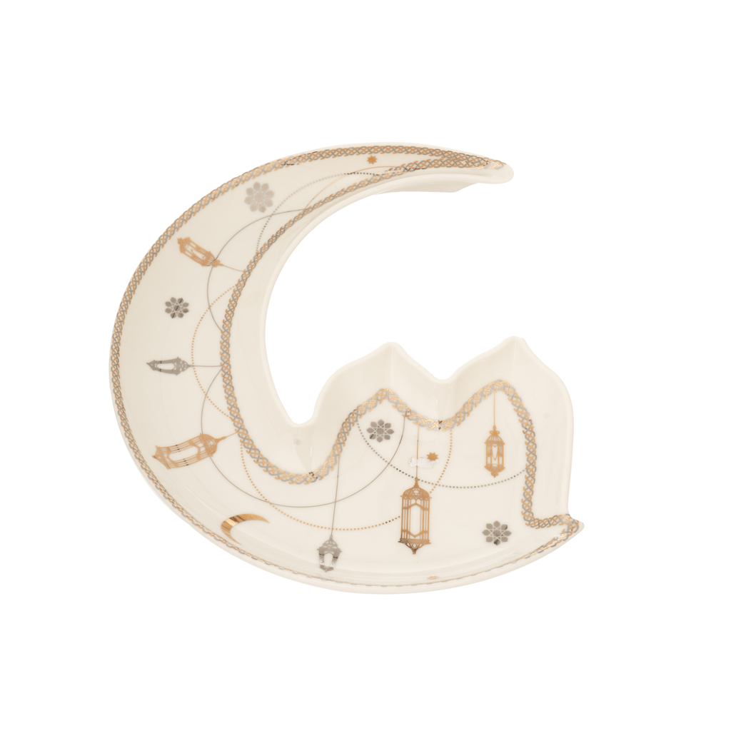 طبق تقديم تسالي بورسلين شكل هلال روزا - ذهبي أبيض | أسواق المرشدي