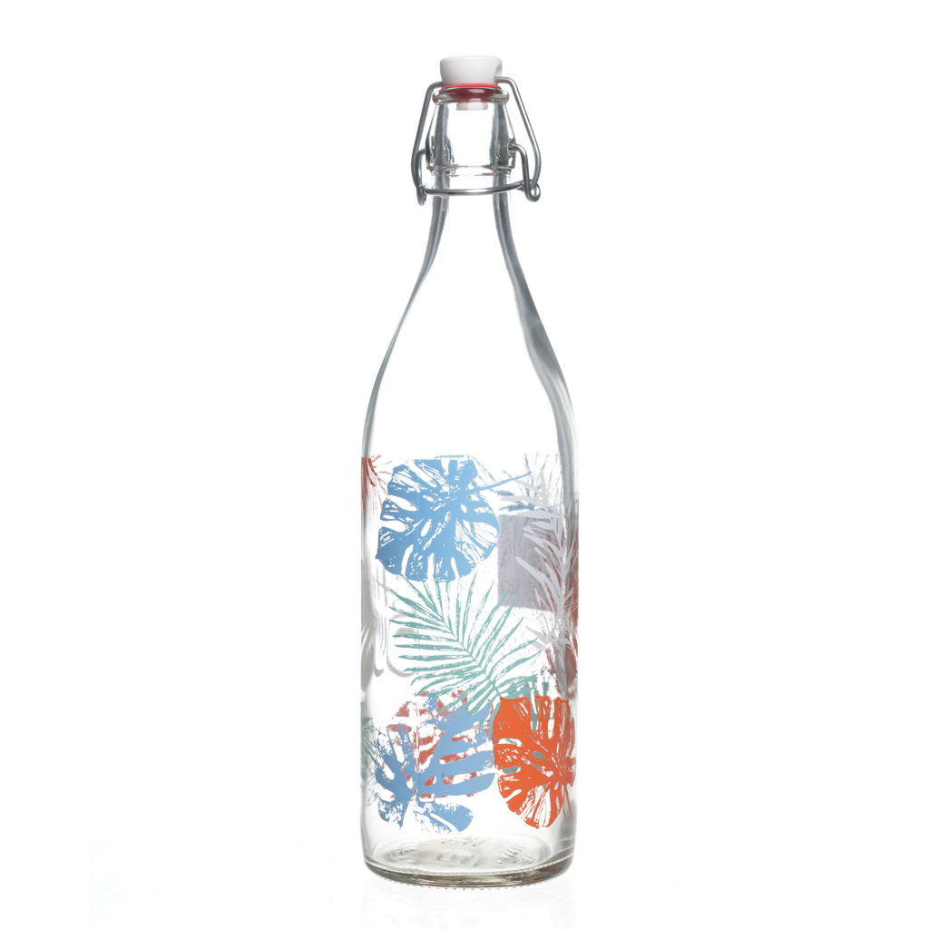 زجاجة مياه زجاج، 1 لتر - شفاف أصفر | أسواق المرشدي