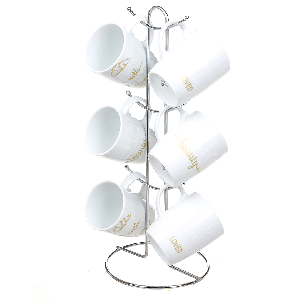 طقم مجات بورسلين لوتس، 6 قطع - أبيض | أسواق المرشدي