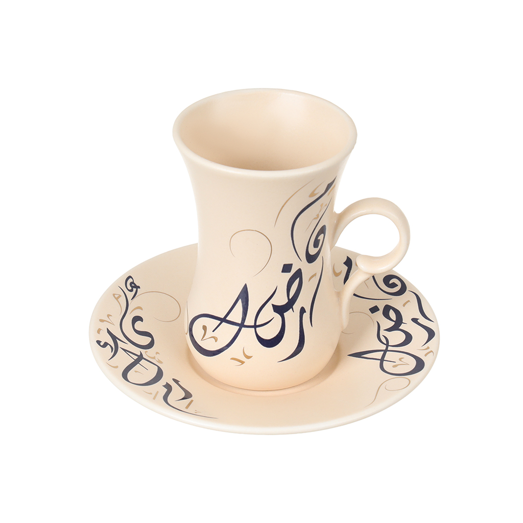 طقم فنجان قهوة بورسلين روزا، 6 قطعة - بيج أسود | أسواق المرشدي