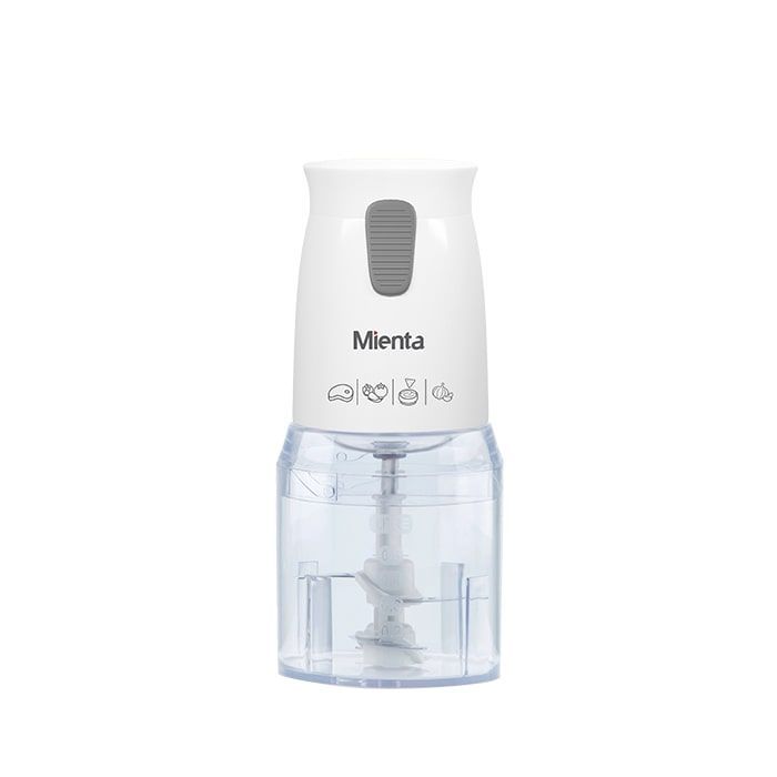 Brand: Mienta Type: Choppers Color: White Material: Plastic Model Number: CH2331A Capacity: 500 ml Power: 450 Watts Number of Speeds: 2 4 Powerful Blades Warranty: 2 Years