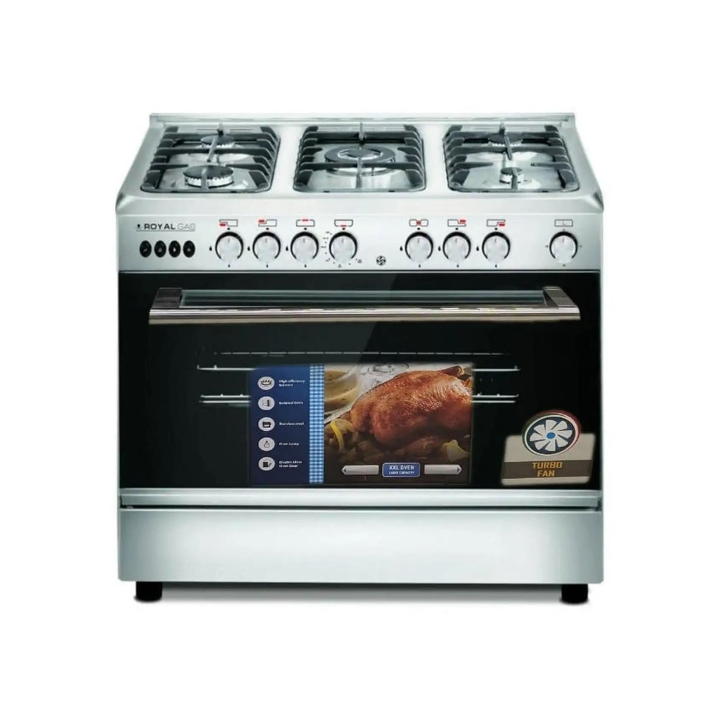 Royal Gas Caesar 2010294 Cooker, 5 Burners, 90x60 cm, Digital, Self Ignition Silver | Almorshedy Marts