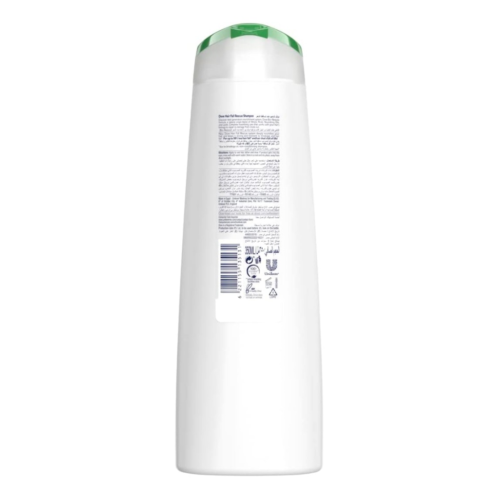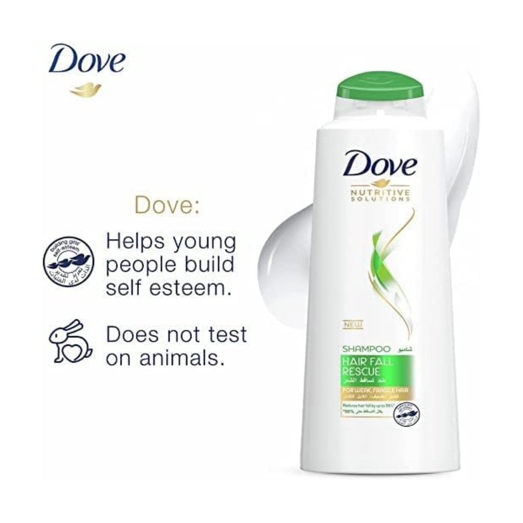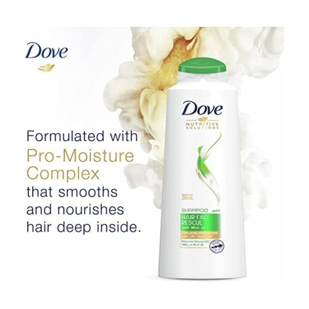 Brand: Dove Type: Shampoo & Conditioner Target Group: Women Size: 350 ml New Dove Nourishing Oil Care hair care range deeply nourishes your dry hair and helps eliminate frizz This Dove Nourishing Oil Care shampoo gives you up to 100 percent smoother hair that's full of life A natural origin blend of Amino Acids, Nourishing Oils, and Lipids. Complete nourishing care that works with your hair's biology to repair its damage from inside out Formulated with Dove's next generation nourishment hair care system, Dove Bio-Restore formula Nourished, strong and beautiful hair with every wash using Dove Hair Fall Rescue Shampoo