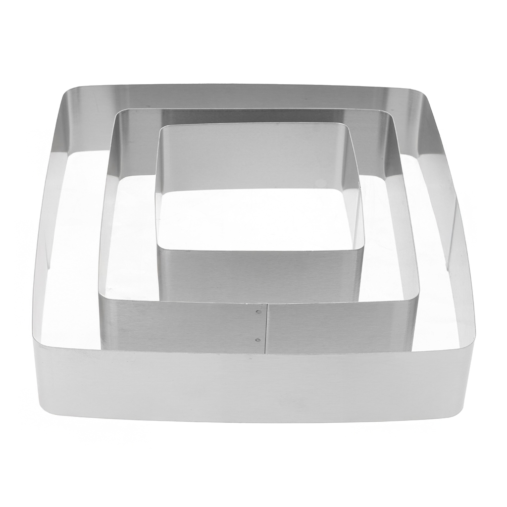 Brand: Other Type: Square Cake Mold Set Number Of Pieces: 3 Pieces Color: Silver About Product: Cake Mold Size 20×4.5 cm Cake Mold Size 15×4.5 cm Cake Mold Size 10×4.5 cm