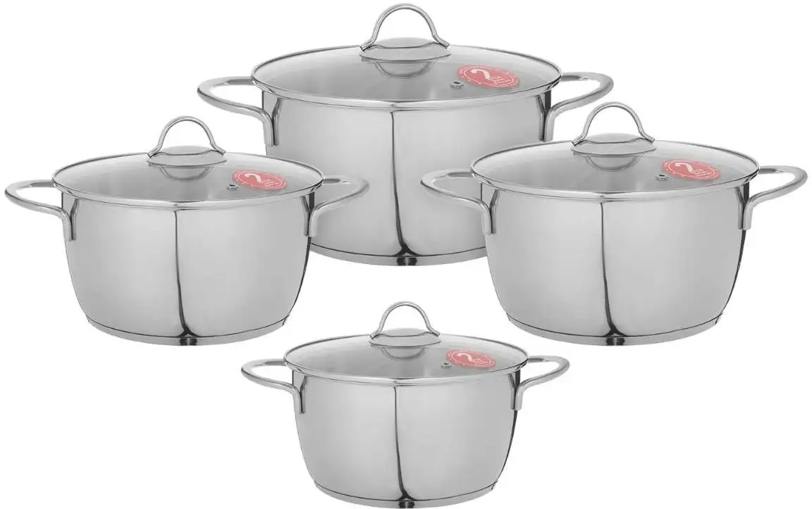 Brand : Zahran Type : Cookware Sets Color : Silver Material : Stainless Steel Number Of Pieces : 8 Pieces About Product : Includes: 1 Pot with lid, size 16 cm 1 Pot with lid, size 18 cm 1 Pot with lid, size 24 cm 1 Pot with lid, size 28 cm each with a matching lid. Ideal for everyday cooking, from small meals to large family dishes.