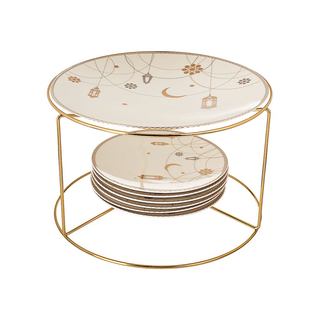 Type: Serving set with a two-tier stainless steel stand