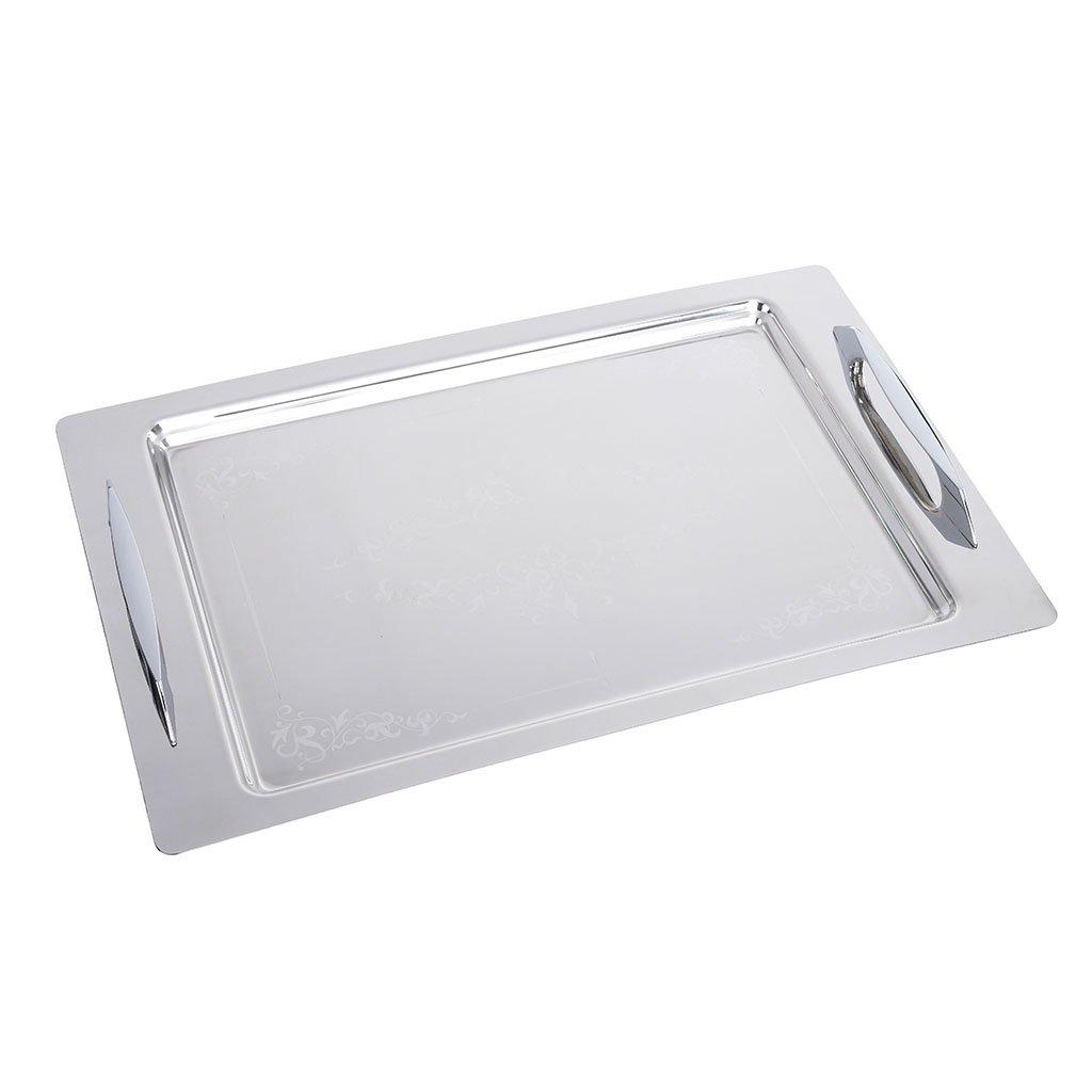 Brand: Arshia Type: Serving Tray Color: Silver Number of pieces: 1 Piece Material: Stainless Steel Size: 48 cm