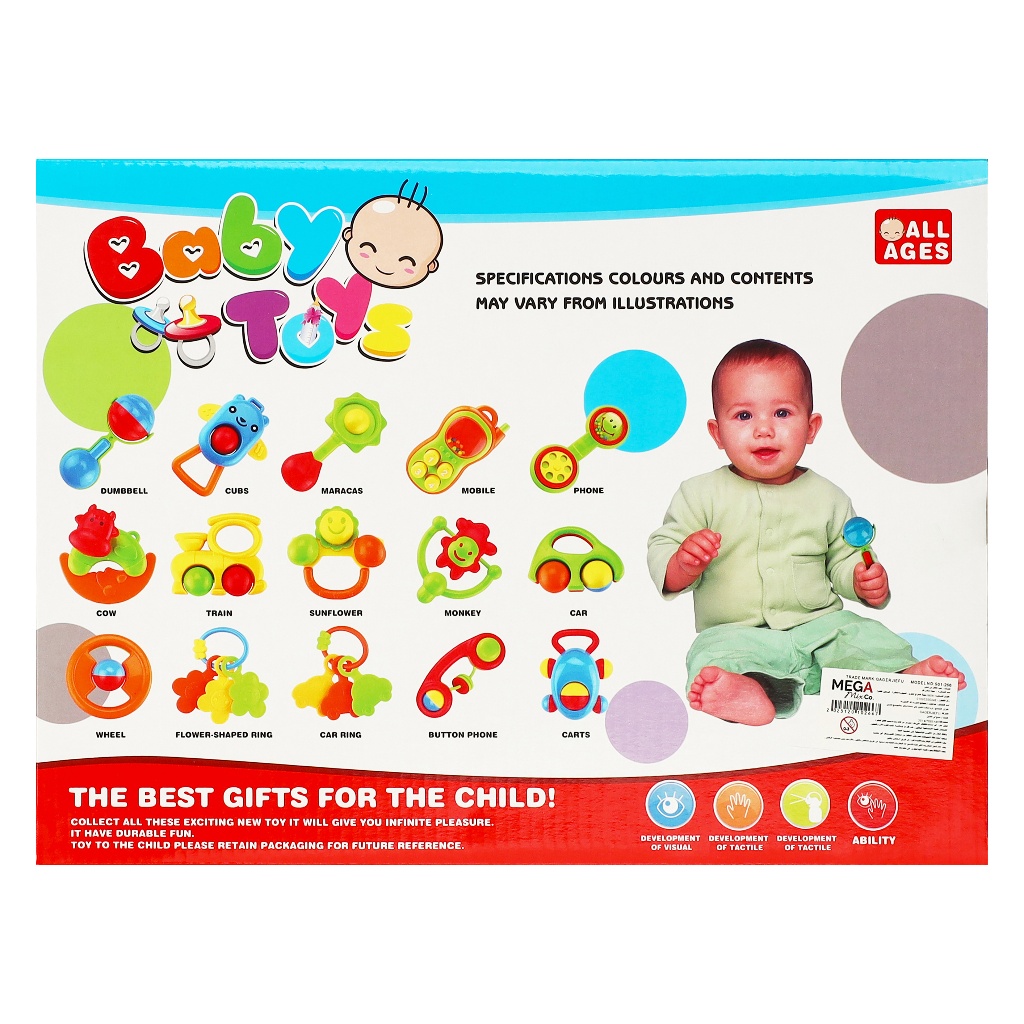 Brand: Other Type: Baby Shakes Bell Set Color: Multicolor Material: Plastic Model Number: BM3380A Made The Sound :Yes Recommended age: New Born Target Gender: New Born Number Of Pieces : 8 Pieces About of Item : Enjoying toy for keeping hand-eye coordination skills honed. Easy to use Provides endless hours of fun and entertainment No batteries required Warning:Must be kept away from sources of flame, sunlight and any external influences.